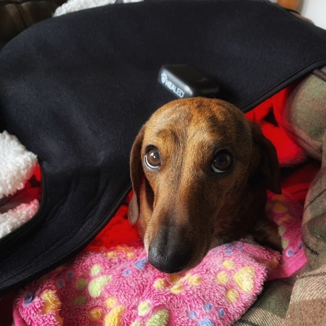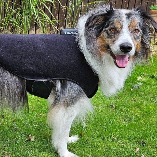 HeaLED 的光療外套和腳包都可穿戴,您可以透過附帶的尼龍搭扣輕鬆調整鬆緊。腳包可以用作手持設備,用於難以觸及的部位。外套亦可以充當“毯子”使用,放於寵物身上,以提高舒適度並覆蓋身體上主要的肌肉群。